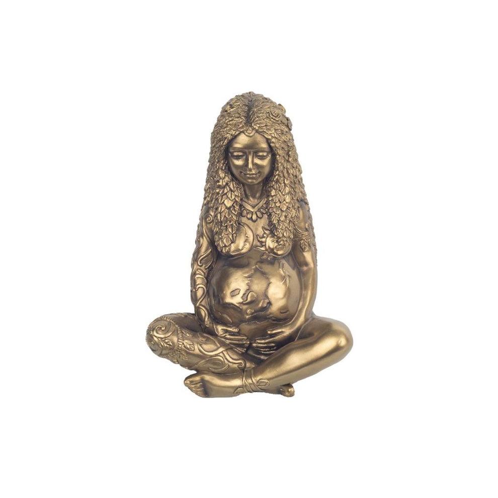 Estátua Decorativa Mãe Terra Dourada – Resina com Acabamento Metálico