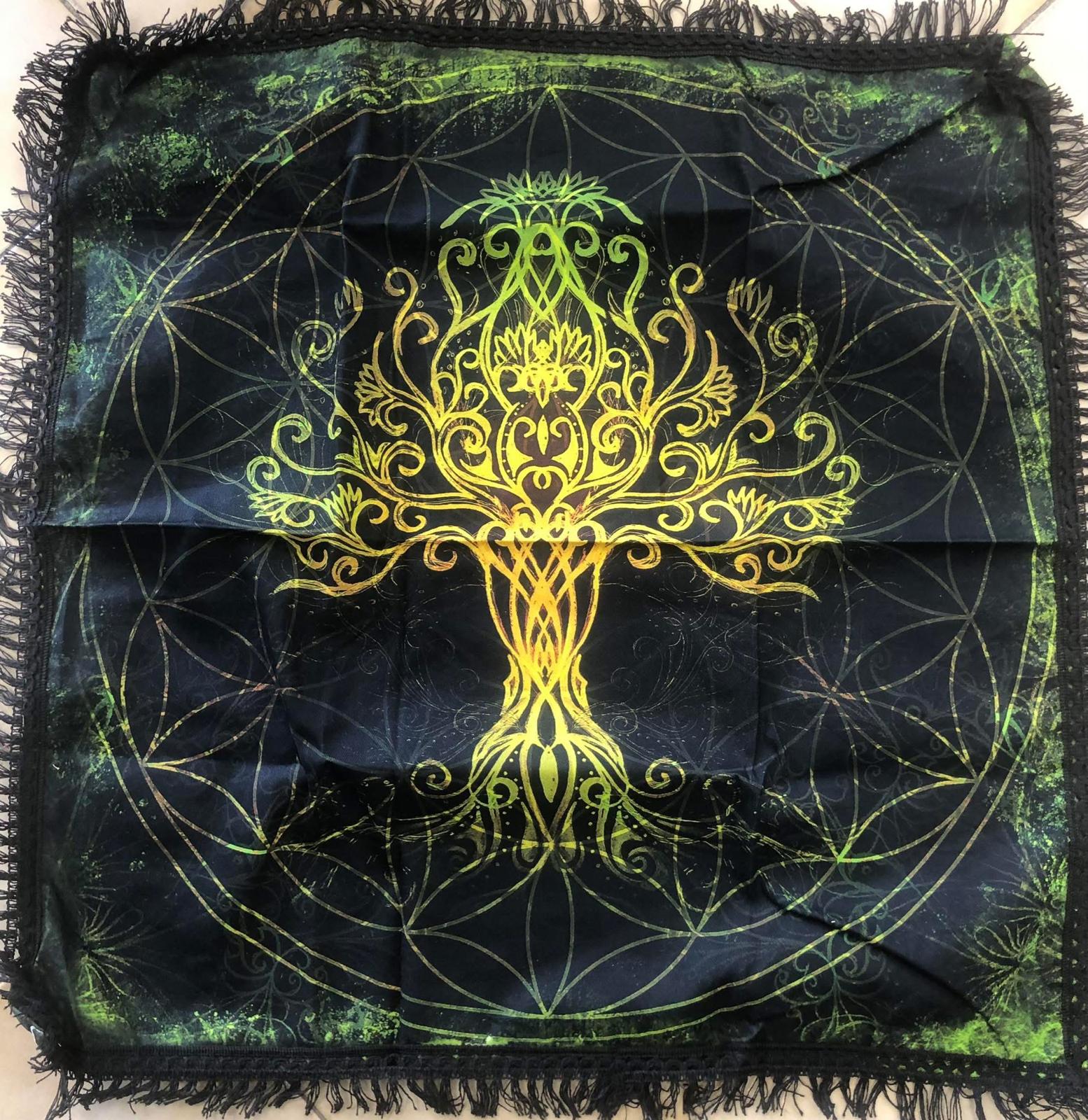 Pano de Tarô Árvore da Vida – ideal para leituras, rituais e uso como altar. Medidas: 60 cm x 60 cm.